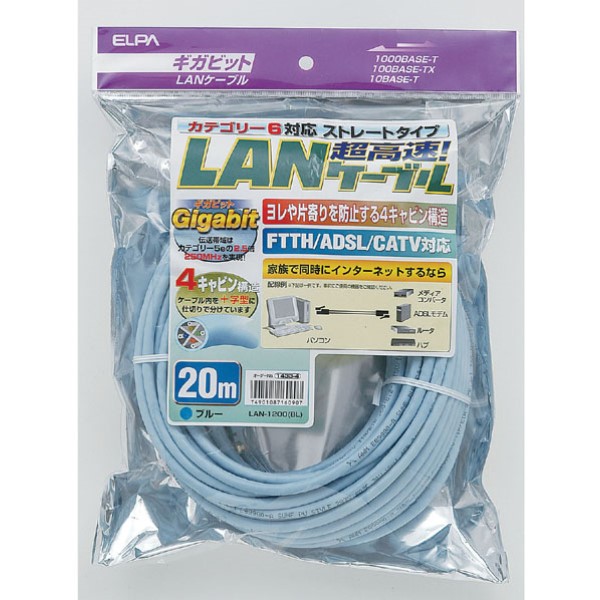 ELPA LANケーブル CAT6 20m ブルー カテゴリ6準拠 LAN-1200BL FTTH・ADSL・CATV対応 8極8芯用 エルパ 送料無料