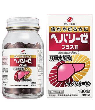 肝臓が疲れてくると、消化不良等の胃腸障害や栄養障害、さらには全身の疲れ、だるさが生じてきます。ヘパリーゼプラスIIは、弱った肝臓の働きを助ける成分である肝臓水解物とイノシトールを主成分に、不足しがちなビタミン補給のためにビタミンB2・E を配合した滋養強壮保健剤です。体の内側から胃腸の働きや肉体疲労などを改善します。