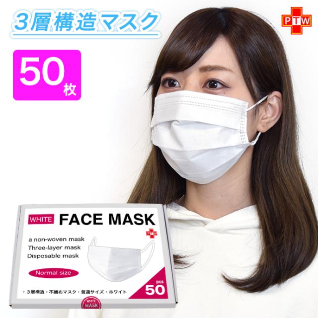3層式不織布マスク 普通サイズ 50枚入