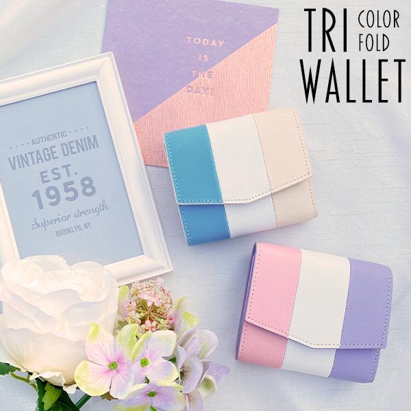 ミニ財布 三つ折り レディース 財布 革 小銭入れ ボックス型 カード入れ サフィアーノ 牛革 フラップ トリカラー コンパクト 小さい財布 小さめ かわいい 送料無料 ギフト 母の日 プレゼント ギフト