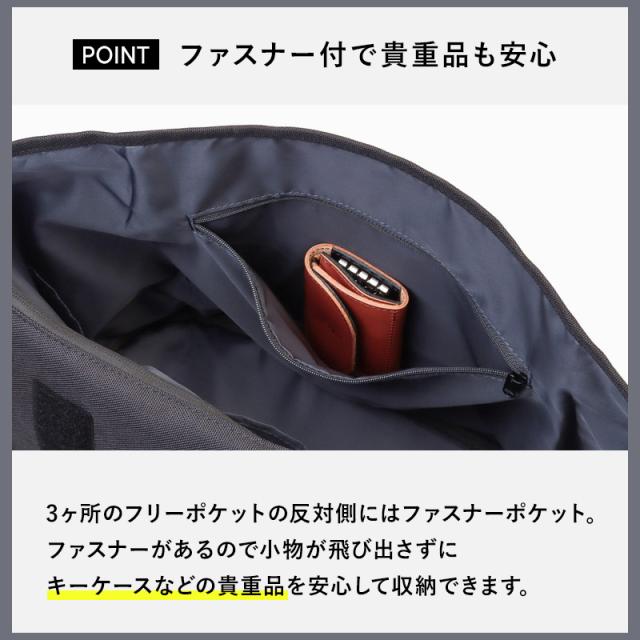 背面側にはメインスペース直結のファスナーがあります。