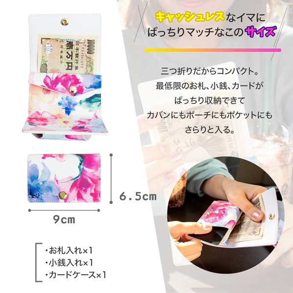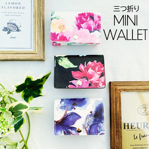 ミニ財布 三つ折り 財布 レディース ボタニカル 花柄 小銭入れ 小さい財布 カード入れ 極小 3つ折り コンパクト ミニウォレット財布 ギフト 母の日 プレゼント ギフト
