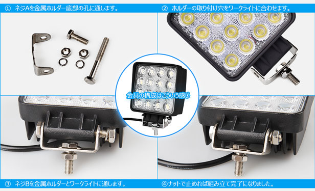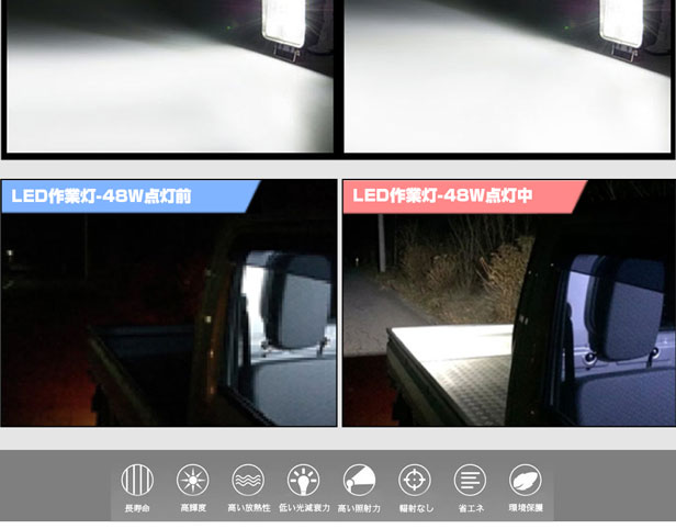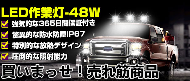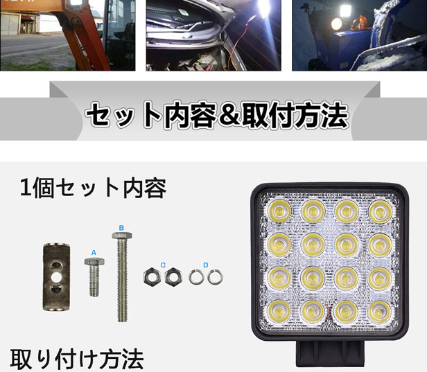 ※p1倍限定【翌日配達】作業灯 1台 48w 12v 24v led 投光器 広角 防水 ワーク ライト 車 アクセサリー ledライト スポットライト バックランプ 明るさ フォグランプ 汎用 エクストレイル ジムニー jb23 電飾パーツ トラックパーツ 外灯 サーチライト