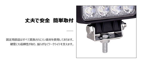 | ☞ 驚異的な照射能力と耐久性。 ☞ 明るくコンパクトな汎用LED作業灯(ワークランプ)です。 ☞ 取付金具:あり。 ☞ 取付ステーで上下のライト角度調整可能です ! ☞ 主に業務用として購入されることが多く、プロも納得の一品です。 ☞ バッテリーのプラスとマイナスの接続だけですぐに使用できます! ☞ 船舶、重機、農作業、トラクター、コンバイン、フォークリフト、路肩灯やフォグランプ等の夕暮れ時・夜間作業にとても役立ちます! ☞ 工場出荷前、発送前の2段階で点灯チェック! |