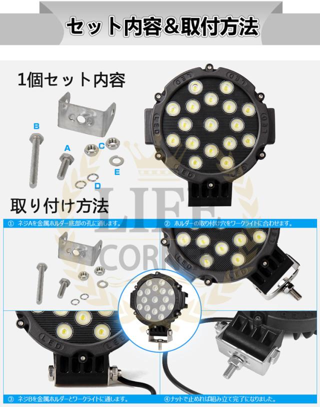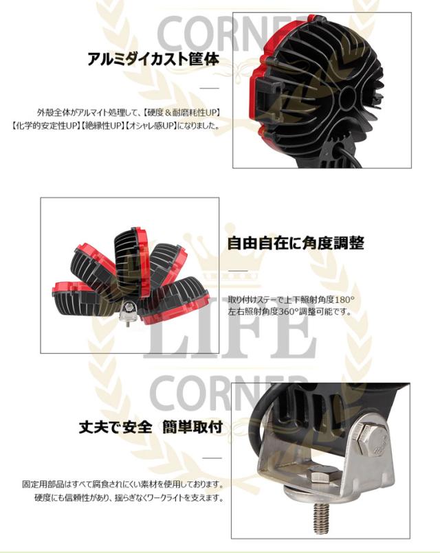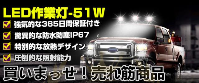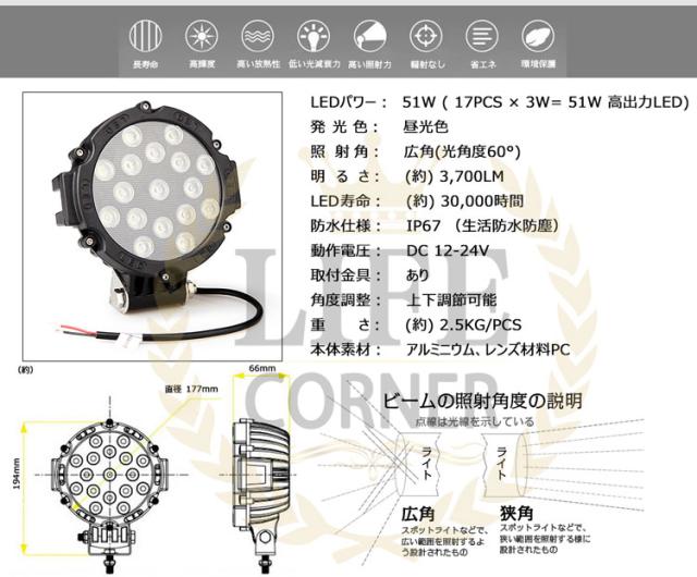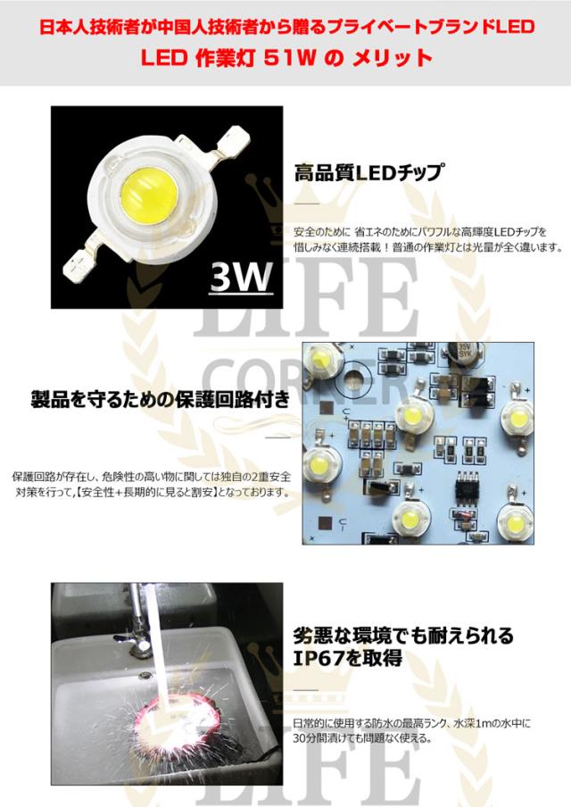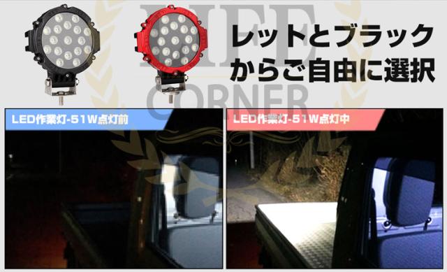 ※p3倍限定【翌日配達】作業灯 12v 24v led 1台 投光器 51W 広角 防水 ワーク ライト 車 アクセサリー ledライト スポットライト バックランプ 明るさ フォグランプ 汎用 エクストレイル ジムニー jb23 電飾パーツ トラックパーツ 外灯 サーチライト