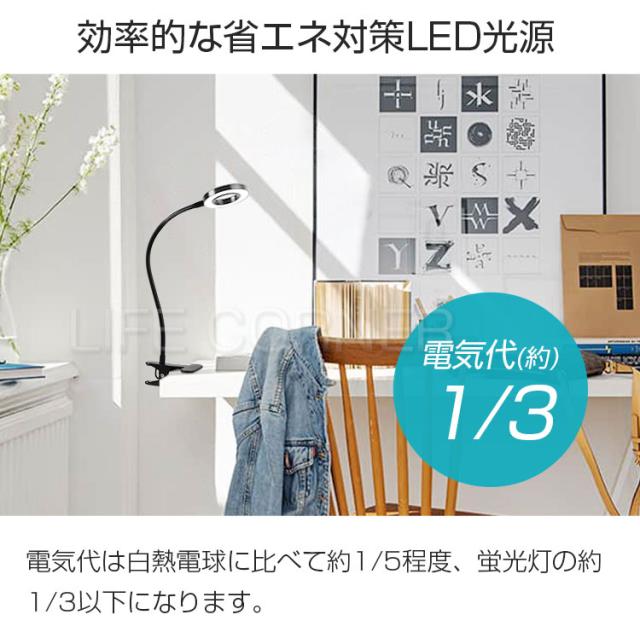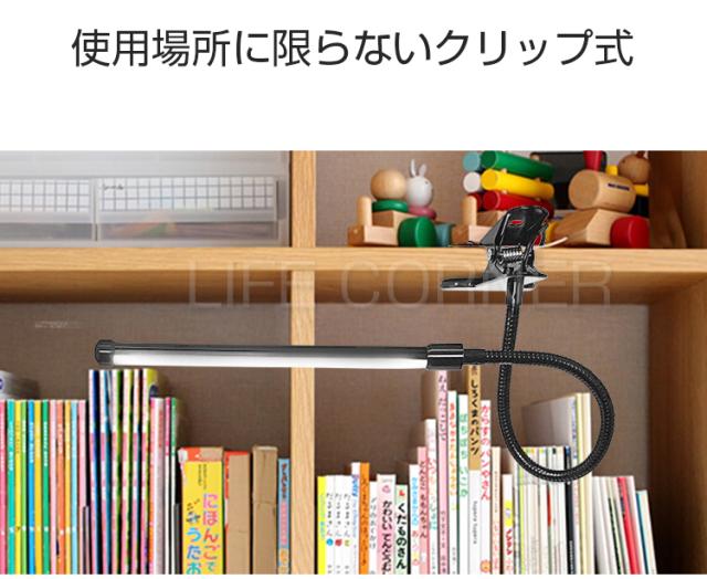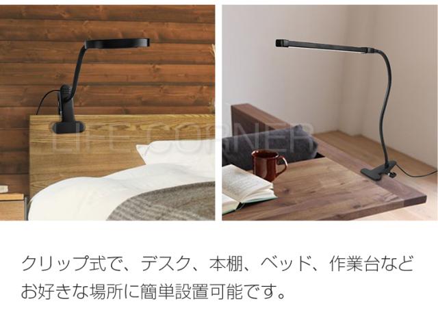 LEDライトなので省電力で長寿命!灯具を自由に動かせる使い勝手の良いスタンド、家庭用コンセントに、本体に付属している。クリップ式ライトなので設置簡単です。机の端、ベッドの枠などに挟んでもいいです。オフィス、ベッド、テーブル、デスクどこにでもしっかりマウントでき、ズレません。室内はもちろん、アウトドアのテント等でも活躍します。