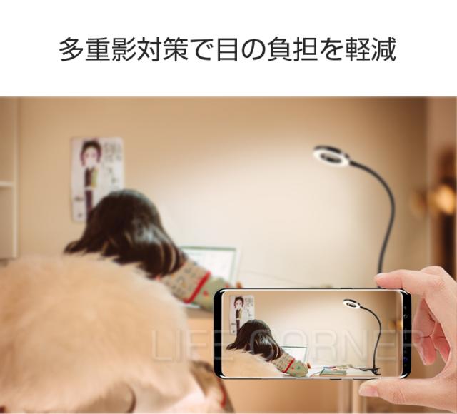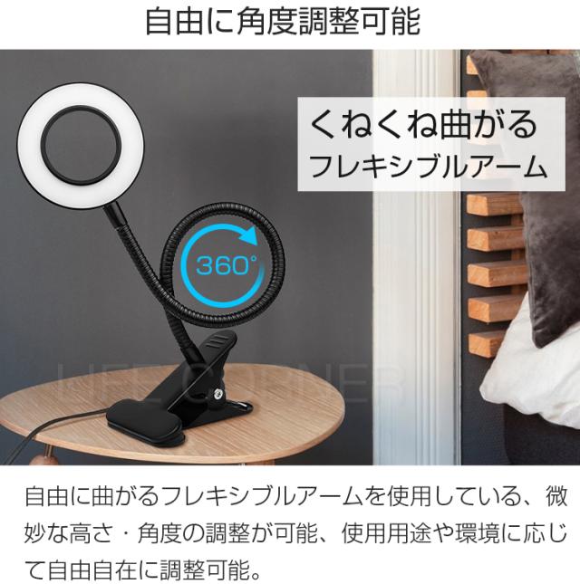 ※p1倍限定【翌日配達】テーブルランプ リモートワーク 在宅ワーク リングライト ベッド クリップ ライト クリップライト 寝室 照明 ledライト led照明 zoom 撮影 led照明器具 デスクライト ベッドライト 読書灯 スタンドライト 北欧 調光調色