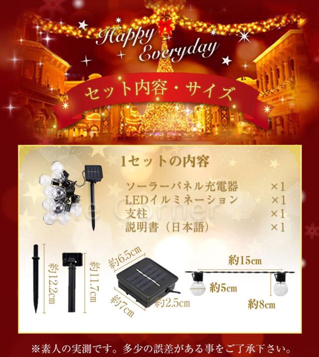 3 ソーラーパネルで充電するので、電源不要で電気代0円!経済的でエコなイルミネーションです!