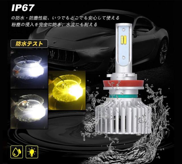 | 1.【次世代の2色3モード切替るLEDヘッドライト/フォグランプ】天候に合わせて色温度が切替えできます!雪、雨、霧など悪天候には3000Kの色温度が非常に必要です。スイッチON 白→OFF→ON黄→OFF→ON 白+黄、バルブを取り外すことなく切り替えられるのでとても便利です。悪天気の視認性を大幅に向 上させます、事故を削減し、安 全運転を確保します。 2.【強力な冷却システム】LEDバルブは放熱対策がバッチリします。放熱性能に優れたアルミヒートシンク採用、内蔵式高速静音扇風機付き、製品の使用寿命が大幅に延長します! 3.【新型デジタルドライバー】定電路回路と過電圧保護回路を組みあわせた最先端システムを内蔵し、バルブに提供される電流と電圧を安定して正確にコントロールします。 4.【高い精度の配光性】高品質チップ採用、均一・高効率の発光特徴を持って、普通のチップと比べ発光率はアップします。 対向車が眩しくない設計! 5.キャンセラー内蔵式! |