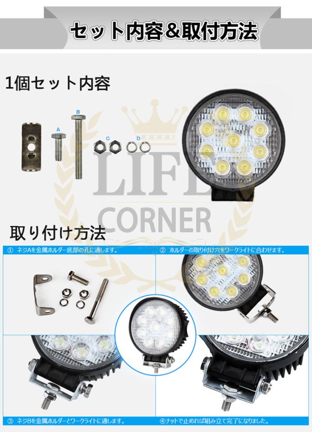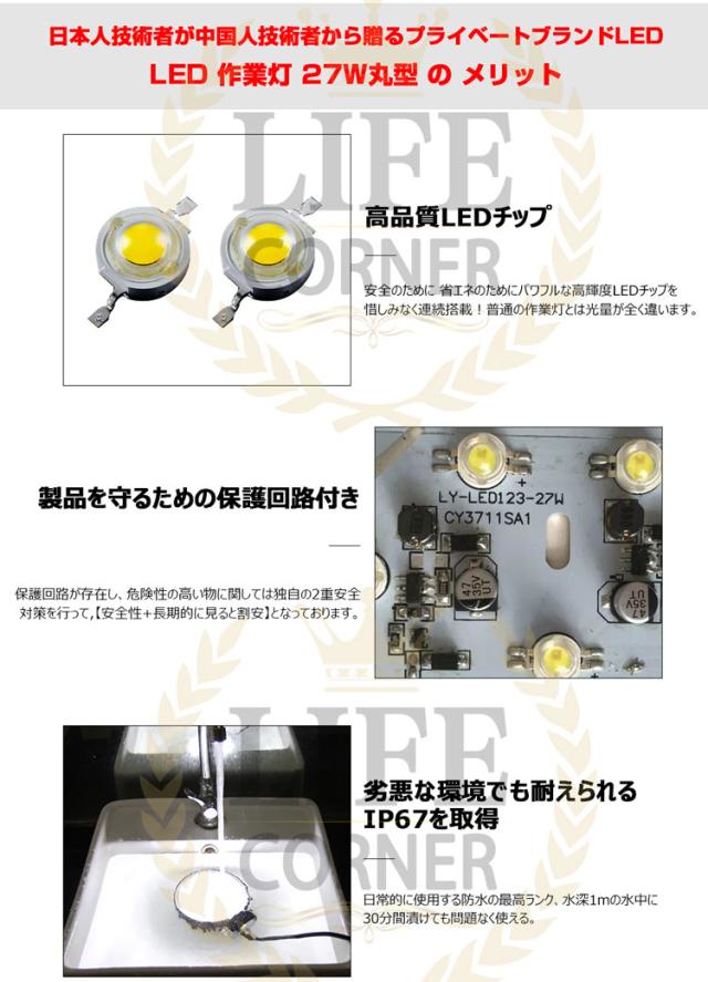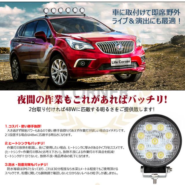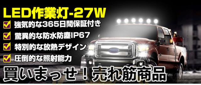 ※p1倍限定【翌日配達】1台 作業灯 12v 24v led 投光器 27W 広角 防水 ワーク ライト 車 アクセサリー ledライト スポットライト バックランプ 明るさ フォグランプ 汎用 エクストレイル ジムニー 電飾パーツ トラックパーツ 外灯 サーチライト 昼光色