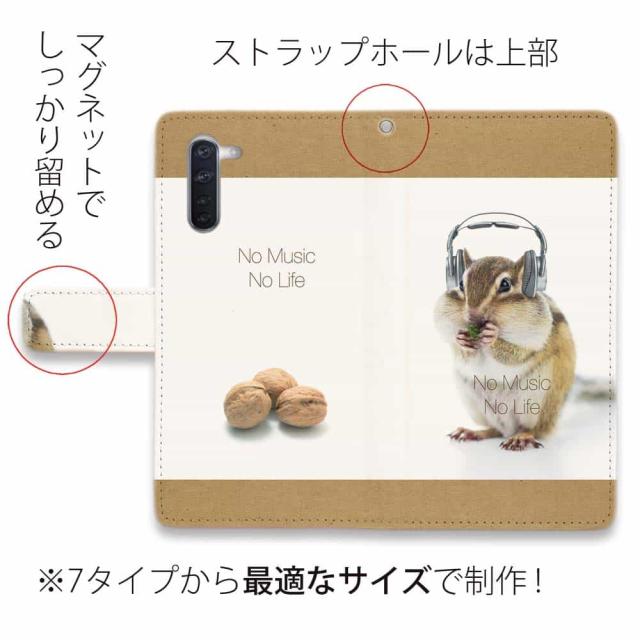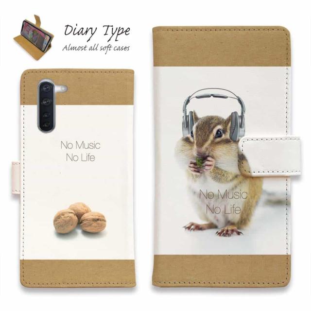 Android スマホケース 手帳型 マグネット カード収納 OPPO Reno5 A OPPO Reno3 A Android One S8 ケース シンプルスマホ6 らくらくスマートフォン LG V60 ThinQ xiaomi mi URBANO アンドロイド ケース 小動物 かわいい リスだってNo Music No Life
