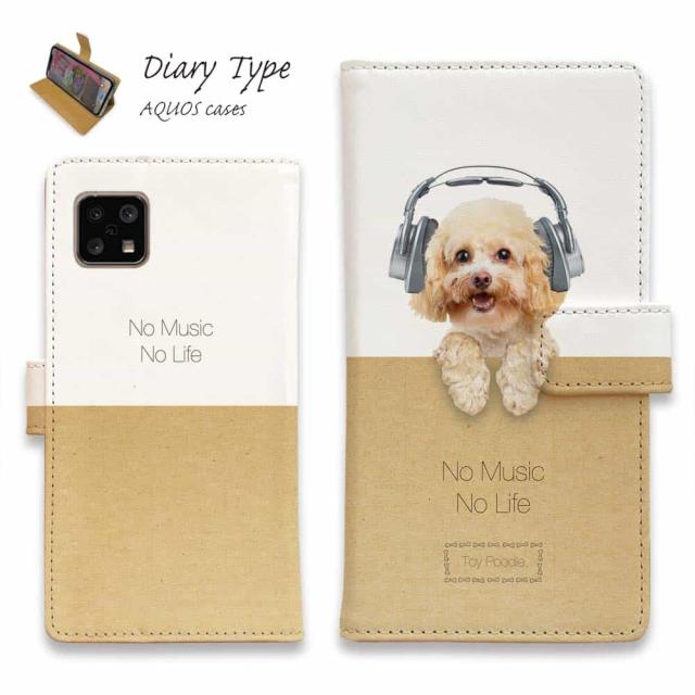 AQUOS sense10 アクオス センス10 スマホケース 手帳型 マグネット カード収納 AQUOS sense9 sense8 R9 R8 Pro wish4 wish3 sense7 plus ケース sense6 sense4 アクオス ケース 犬 イヌ 用品 トイプードルだってNo Music No Life