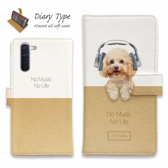 Android スマホケース 手帳型 マグネット カード収納 OPPO Reno5 A OPPO Reno3 A Android One S8 ケース シンプルスマホ6 らくらくスマートフォン LG V60 ThinQ xiaomi mi URBANO アンドロイド ケース 犬 イヌ 用品 雑貨 トイプードルだってNo Music No Life