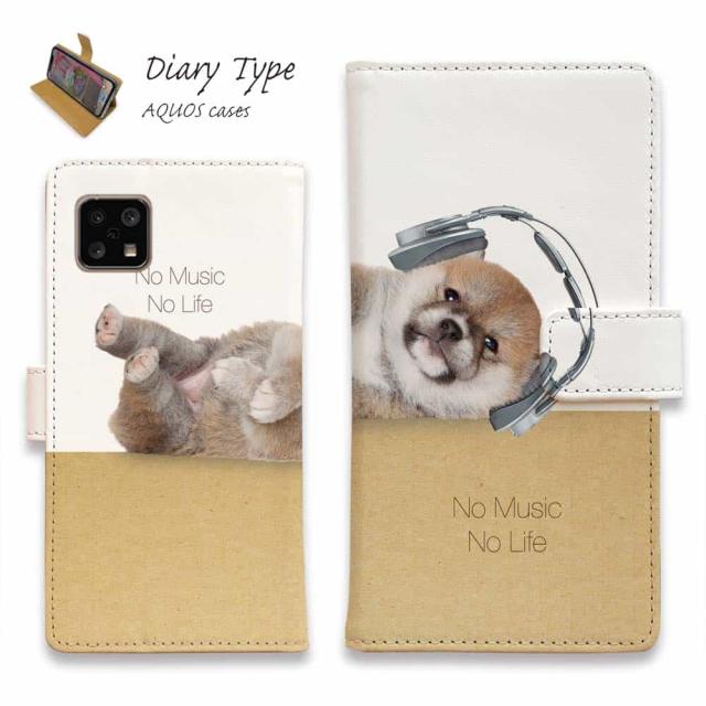 AQUOS sense10 アクオス センス10 スマホケース 手帳型 マグネット カード収納 AQUOS sense9 sense8 R9 R8 Pro wish4 wish3 sense7 plus ケース sense6 sense4 アクオス ケース 犬 イヌ 用品 雑貨 柴子犬だってNo Music No Life