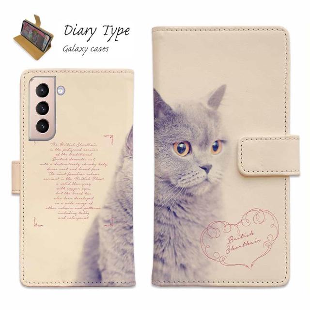 Galaxy S25 A25 Ultra S24 FE A56 スマホケース ギャラクシー ケース 手帳型 マグネット カード収納 Galaxy S24 ケース A35 A54 A23 A53 A52 A51 A41 A32 A31 A22 S23 S23+ S22 S21 S10+ S10 猫 ネコ 用品 雑貨 ブリティッシュショートヘア