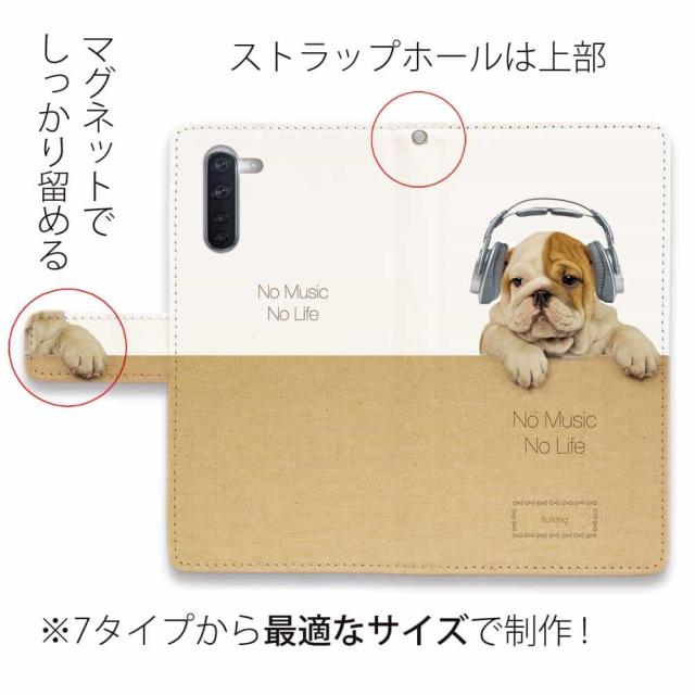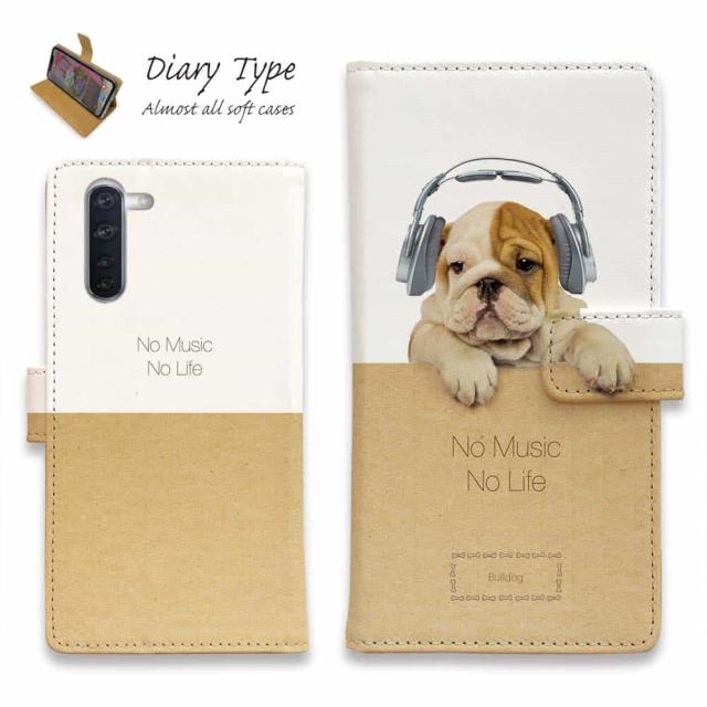 Android スマホケース 手帳型 マグネット カード収納 OPPO Reno5 A OPPO Reno3 A Android One S8 ケース シンプルスマホ6 らくらくスマートフォン LG V60 ThinQ xiaomi mi URBANO アンドロイド ケース 犬 イヌ 用品 雑貨 ブルドッグだってNo Music No Life