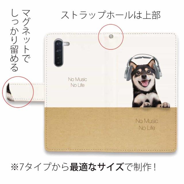 Android スマホケース 手帳型 マグネット カード収納 OPPO Reno5 A OPPO Reno3 A Android One S8 ケース シンプルスマホ6 らくらくスマートフォン LG V60 ThinQ xiaomi mi URBANO アンドロイド ケース 犬 イヌ 用品 雑貨 黒柴だってNo Music No Life