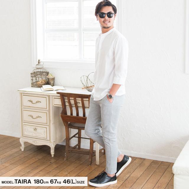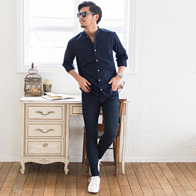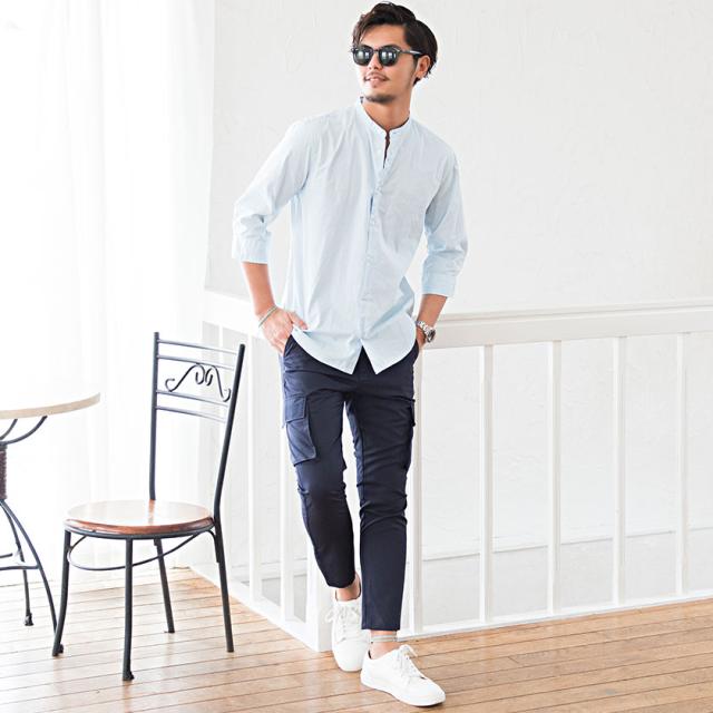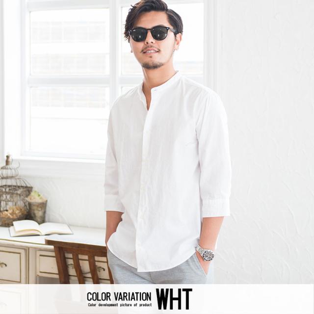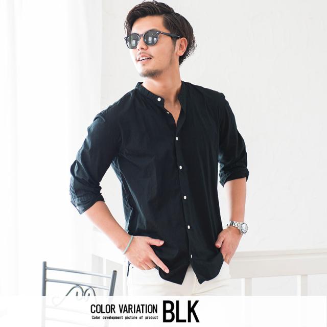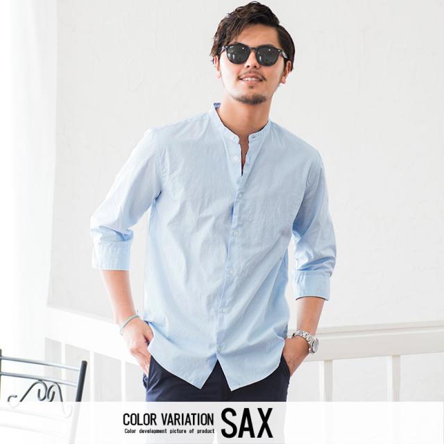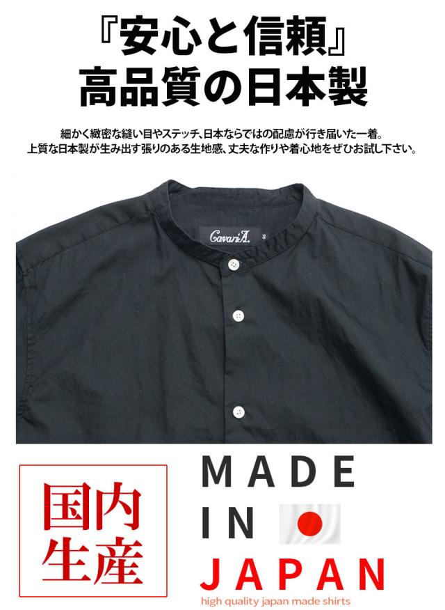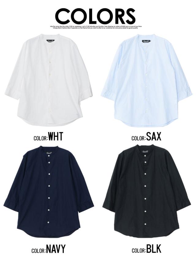 シャツ メンズ 7分袖 CavariA キャバリア 日本製バンドカラー7分袖シャツ 即日発送 トップス インナー バンドカラーシャツ 無地 国産 コットン ホワイト サックス ネイビー ブラック 白 黒 M L XL BITTER系 ビター系 春 夏 [CAGS20-07]