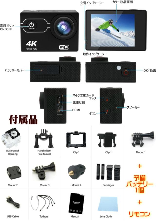 【送料無料・税込み】最新 4K ウエアラブル カメラ TB- 305アクション Wi-Fi sony 製 CMOS センサー 搭載 アプリ スマホ 全部 入り オールインワン セット 高画質 動画 撮影 写真 タイムラプス ドローン spy camera アプリ 証拠 録音 i phone android