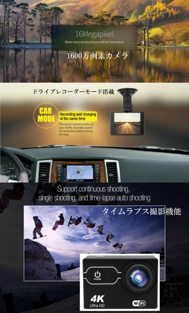 2020新型全部入り!オールインワンセットの4Kアクションウエアラブルカメラ TB-305