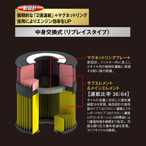 ●高性能オイルフィルターの画期的商品「PIAAツインパワー」に強力マグネットをセット。