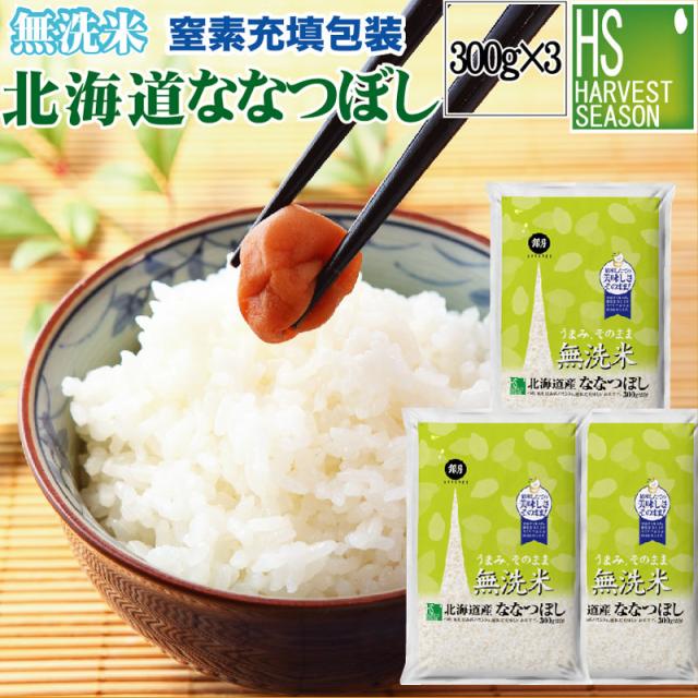 新米 令和7年産【メール便送料無料】 無洗米 北海道ななつぼし300g(2合)×3袋(計900g)【特A獲得米】【鮮度を保つ窒素充填】ポイント消化に!