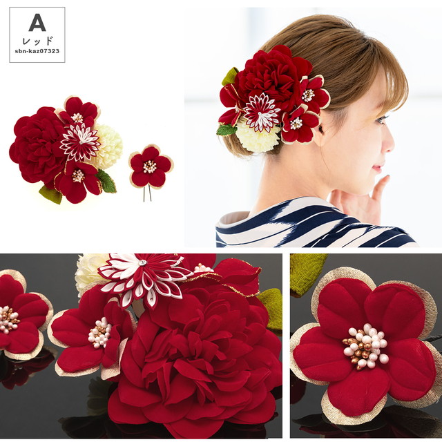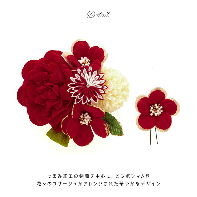 髪飾り 成人式 花 卒業式 和装 2点セット 振袖 袴姿 ピンポンマム 菊 フラワー つまみ細工 ラインストーン コーム式 Uピン式 髪留め ヘアアクセサリー 日本製 送料無料