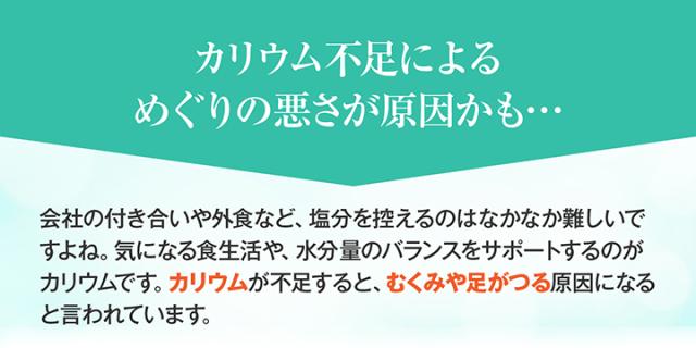 - カリウムの商品は珍しいと主人に言われ足の浮腫が気になるのでお試しで購入 むくみがとれますように願っています