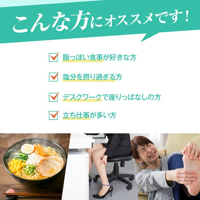 - リピーターです。 塩分摂りすぎたかも…のときは 手や足の浮腫みがありがちなので 飲んでます。 私には合ってると思います。