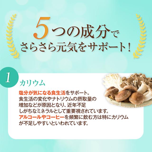 | 栄養成分表示 | カリウム:207.9mg / 3粒当たり |