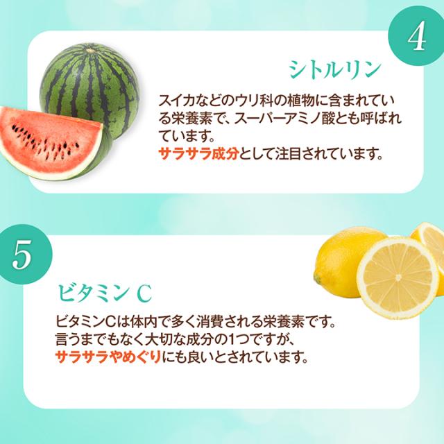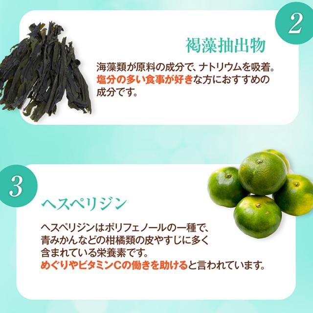 | 原材料名 | 褐藻抽出物(国内製造)、L-シトルリン/塩化カリウム、結晶セルロース、ビタミンC、酵素処理ヘスペリジン、ステアリン酸カルシウム、微粒二酸化ケイ素 |