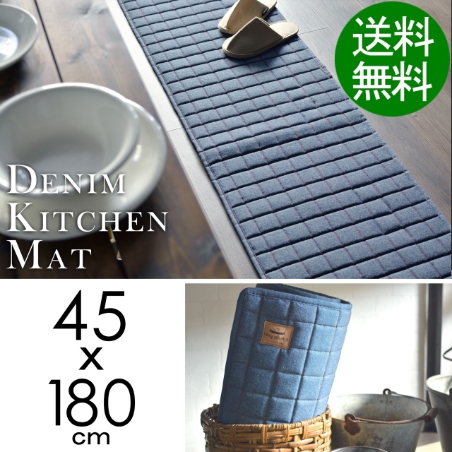 キッチンマット 180 デニム ラグマット おしゃれ 綿 コットン 45x180 北欧 洗える