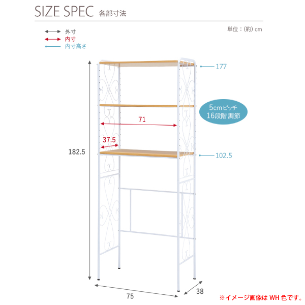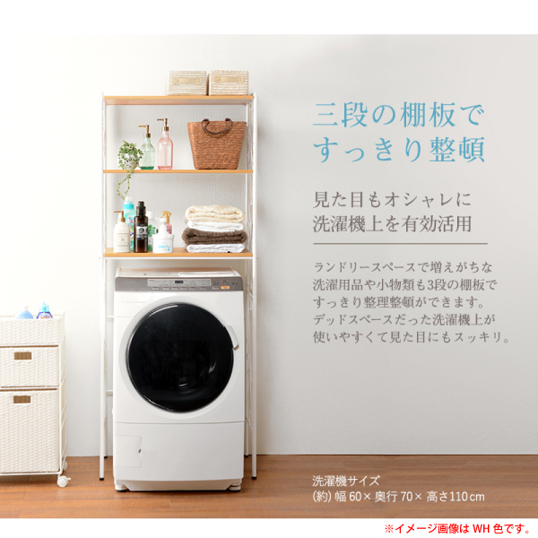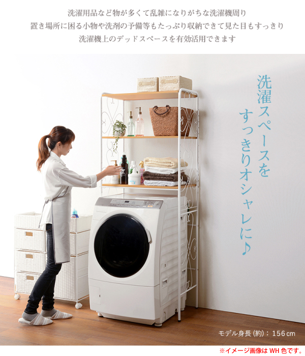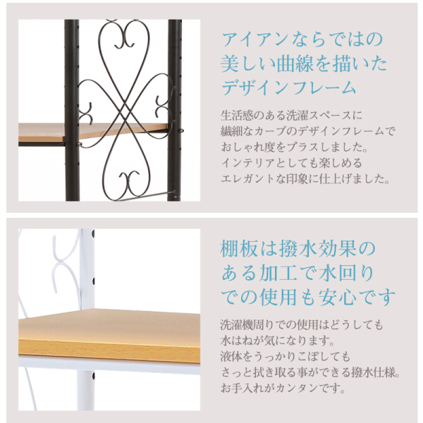 ■組立式■アイアンの曲線がエレガントで、デッドスペースを有効活用できる洗濯機ラック。