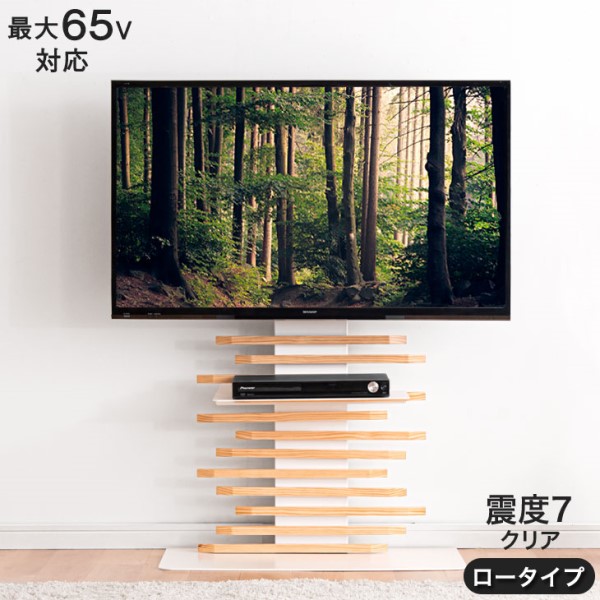 震度7クリア 天然木 壁寄せ テレビスタンド テレビ台 壁掛け風 棚板付き 自立式 無垢 65インチ ブラウン ナチュラル 洋室 和室 耐震対策 天然木 パイン