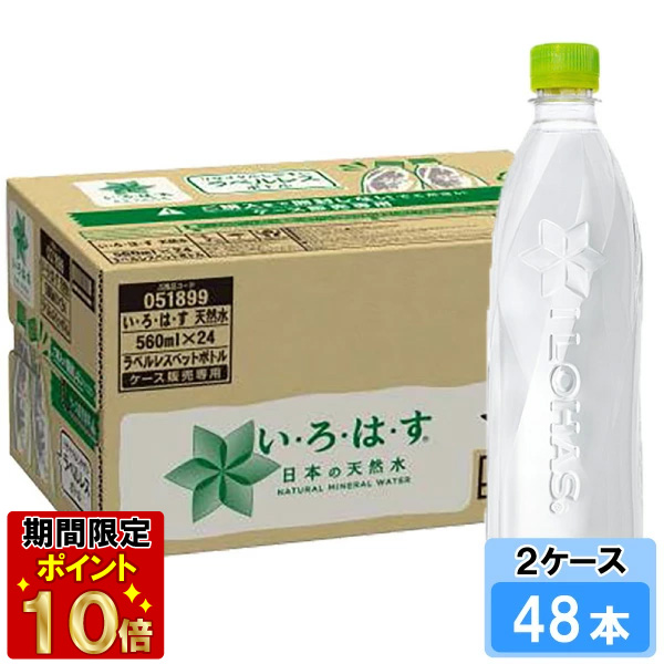 い・ろ・は・す ラベルレス 560ml 48本 (24本×2ケース) PET ペットボトル 軟水 ミネラルウォーター イロハス いろはす 送料無料