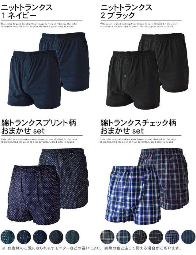 ※綿トランクスはお任せセットになりますので2枚のセット内容はお選び出来ません。予めご了承ください。※