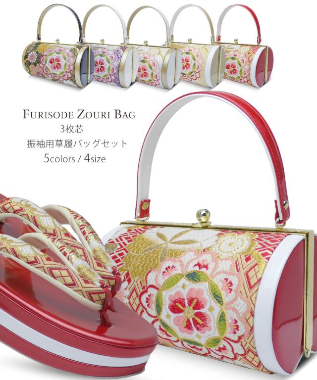 草履バッグセット 帯地使用 3枚芯 厚底 選べる 4サイズ S M L LL 5色 振袖用 柄によっては訪問着にもご利用可能