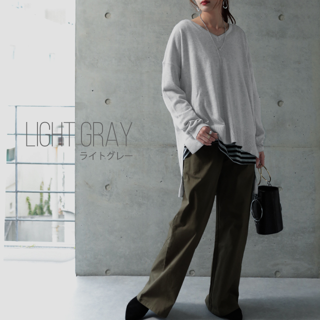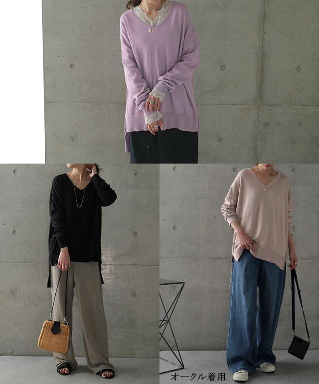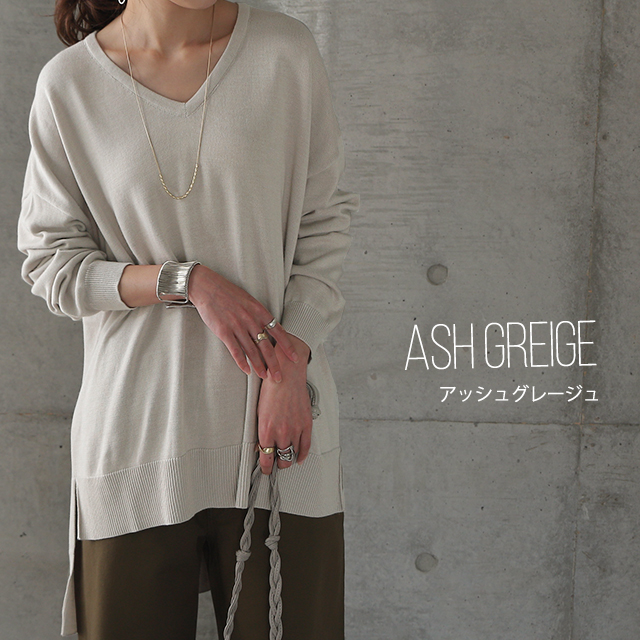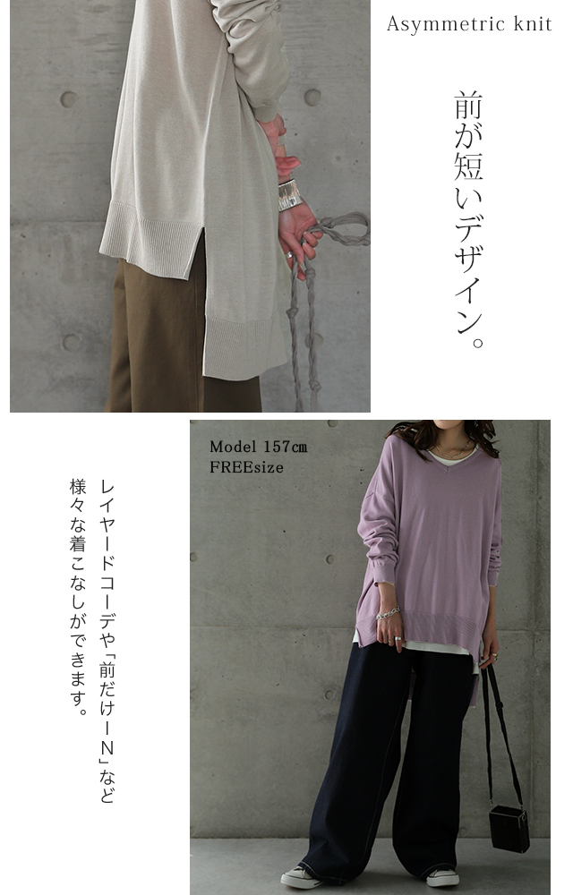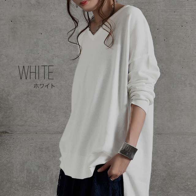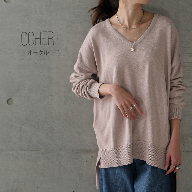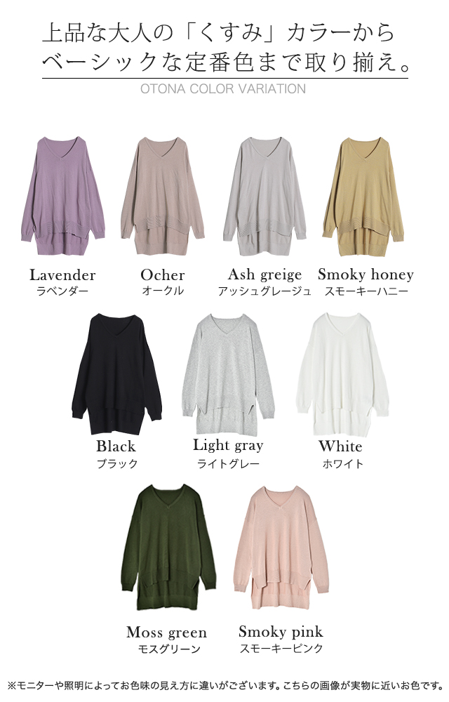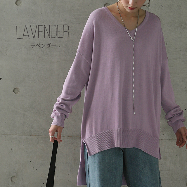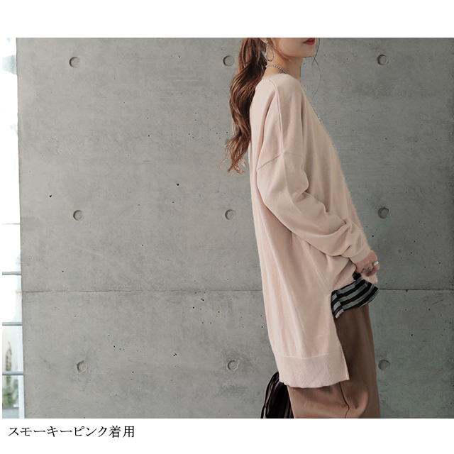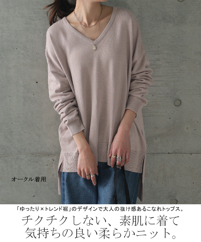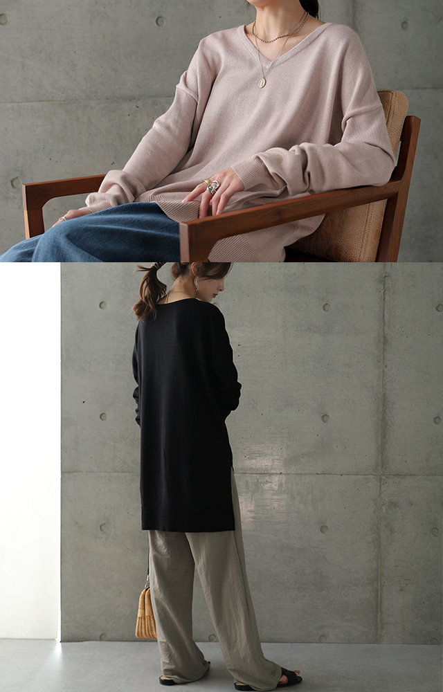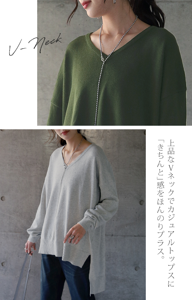 ニット レディース トップス 薄手 ニットソー セーター Vネック 無地 きれいめ ドロップショルダー 長袖 チュニック 大きいサイズ リブ スリット 体型カバー ピンク ブラック グレー 冬 秋 秋新作