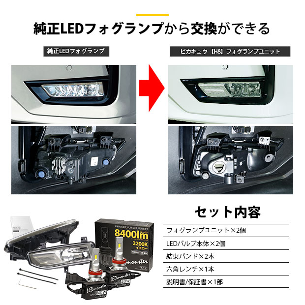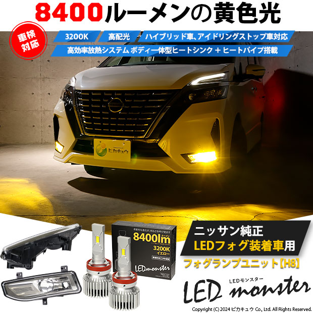 ピカキュウ,LED MONSTER L8400 FOG LAMP KIT,LEDモンスターL8400フォグランプキット,3200K,爆光,良配光,カットライン,日産純正LEDフォグランプ,フォグランプユニット付,セレナC27系後期対応,超爆光,明るい,汎用,後付け,後付けキット,国産車,日本製の車,黄色,ニッサン,NISSAN,激光,車検対応