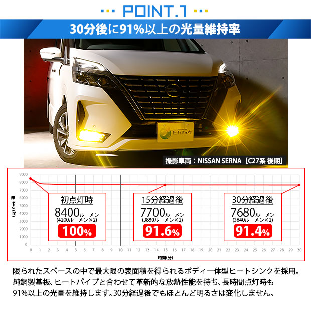 ※ルーメン値は、バルブ2個(車両一台分)の値を示しています。