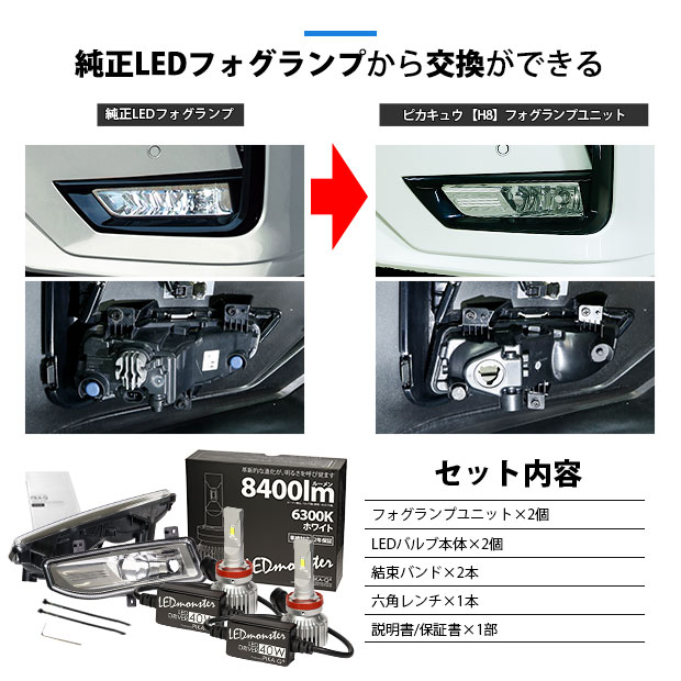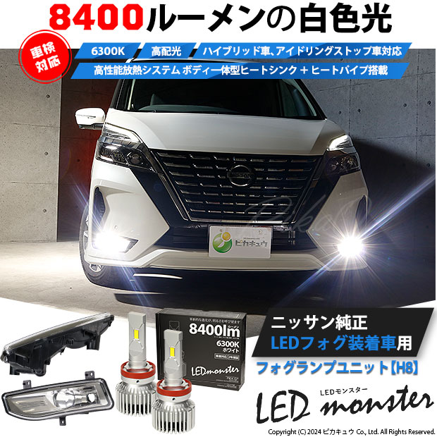 ピカキュウ,LED専門店ピカキュウ,LED MONSTER L8400 FOG LAMP KIT,LEDモンスターL8400フォグランプキット,3200K,爆光,良配光,カットライン,純正LEDフォグランプ,NISSAN,ニッサン