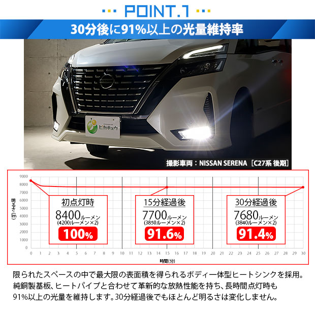 ※ルーメン値は、バルブ2個(車両一台分)の値を示しています。
