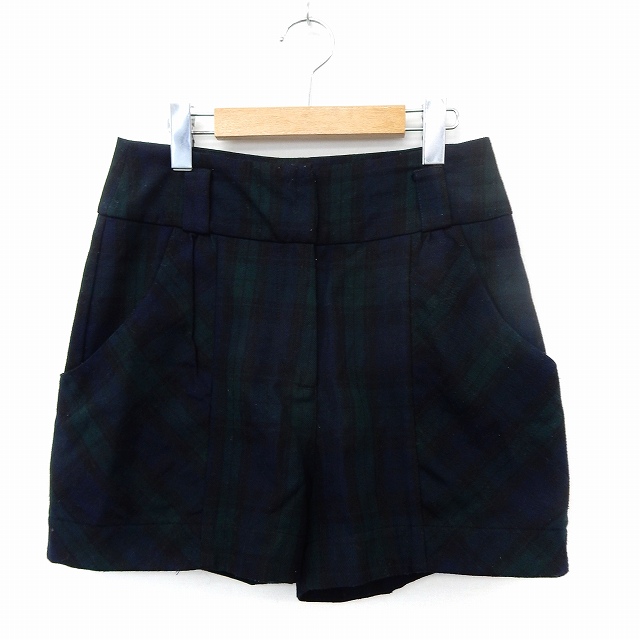 【中古】マシュマロクラウン marshmallow crown パンツ ショートパンツ チェック ジップフライ ポケット F グリーン