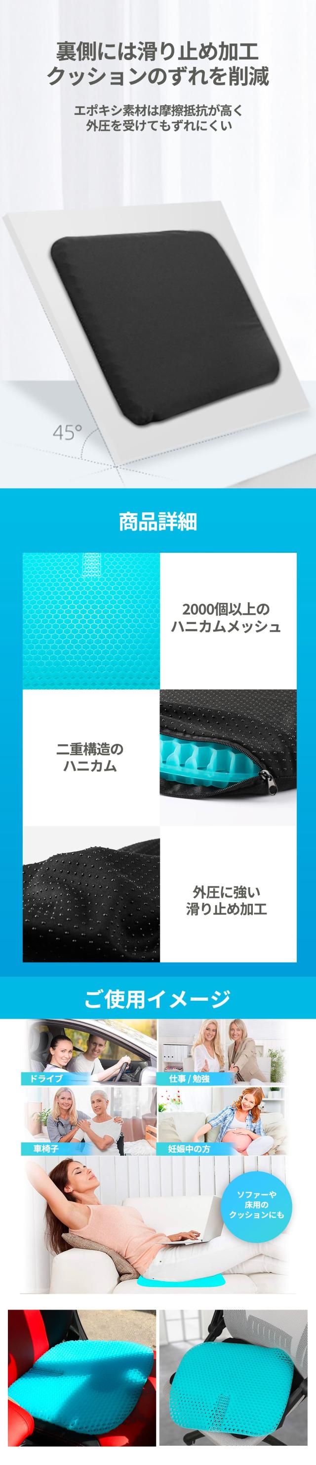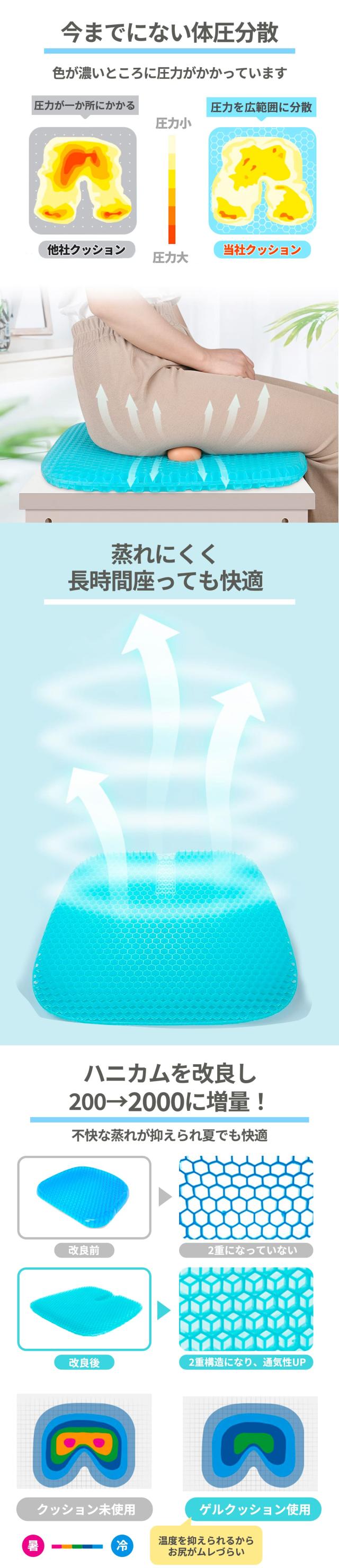 ゲルクッション ジェルクッション クッション 座布団 ハニカム 第三世代 体圧分散 姿勢矯正 美尻 滑り止めカバー付き 椅子 車 オフィス 自宅用 クッション チェア いす イス Gゼロクッション ブルーマジック 卵が割れない スーパー