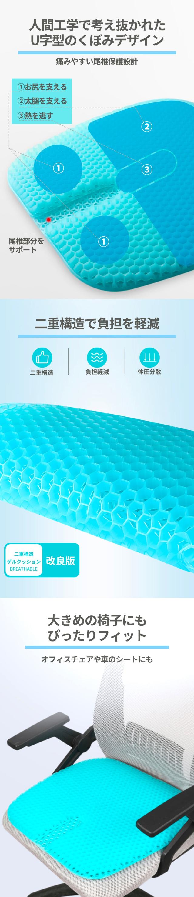 ゲルクッション ジェルクッション 極厚 車 特大 ハニカム 座布団 椅子用 車 椅子用クッション 二重ハニカム構造 カバー付き 2025