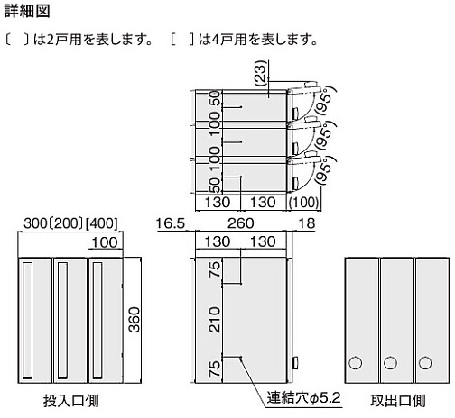注)配達物が投入口から落下収納されるヨコ型に比べ、タテ型は投入口へのイタズラの恐れが高くなります。管理できる場所に設置するようおすすめします。