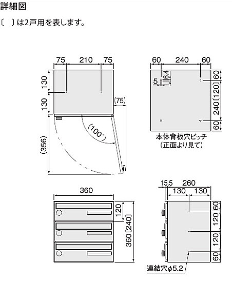 【特長】 ●耐食性・耐久性に優れたステンレス(SUS304)を採用しています。 ●名札交換は扉を開けて行い、外部からのイタズラを防止します。 前入前出/屋内タイプ 3戸 静音ラッチ錠 本体:No.4仕上 扉・投入口:ヘアーライン仕上 アクリル焼付塗装 本体:ステンレス(SUS304)t=0.7mm 扉:ステンレス(SUS304)t=0.8mm 投入口:ステンレス(SUS304)t=0.5mm サイズ(H×W×D) 360×360×275.5 6.4kg KS-MB403S-3R 受注生産約3週間 ※画像はイメージです。 ※パッケージ、仕様、品番などの変更が予告なく変更される場合が御座います。 ●ラッチ錠(R)は市販品南京錠を使用してください。 |