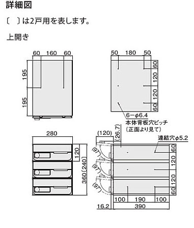 【特長】 ●盗難配慮機構「ナスタガード」付。(意匠登録済) ●扉の急落を防ぐトルクヒンジ付。(上開き) 前入前出/屋内タイプ 2戸 上開き 可変ダイヤル錠 ホワイト 扉・投入口:アクリル焼付塗装 本体:PC/ABS樹脂難燃グレード 扉:ステンレス(SUS304) PC樹脂 投入口:ステンレス(SUS304) サイズ(H×W×D) 240×280×406.2 3.4kg KS-MB6002PU-2LK-W 受注生産約1週間 ※画像はイメージです。 ※パッケージ、仕様、品番などの変更が予告なく変更される場合が御座います。 注)可変ダイヤル錠(LK)は出荷時、初期開錠番号が設定されています。変更不要の場合は、そのままご使用いただけます。 ※日本郵便が推奨する規格に対応していることを示します。 |