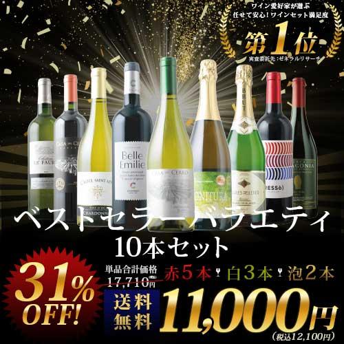 ワインセット ベストセラーワイン10本セット(赤ワイン5本、白ワイン3本、スパークリングワイン2本)送料無料