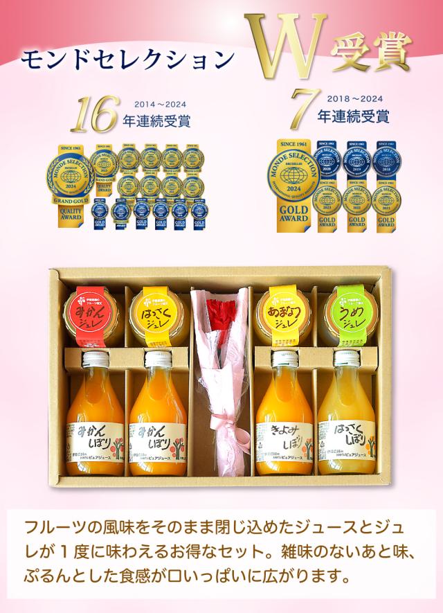 母の日 ジュース ゼリー ギフト プレゼント 花とセット オレンジジュース 詰め合わせ スイーツ フルーツゼリー 送料無料 内祝 洋菓子 無添加